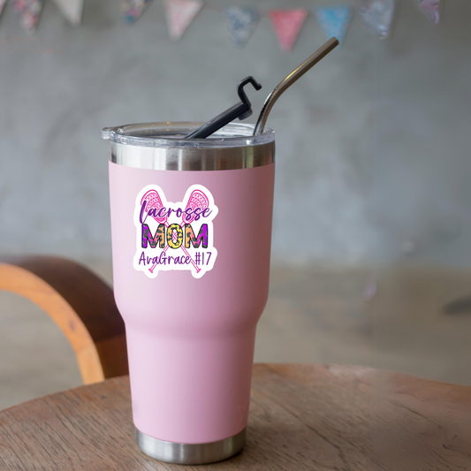 Custom Lacrosse Mom Die Cut Sticker: Personalize with your child's name and jersey